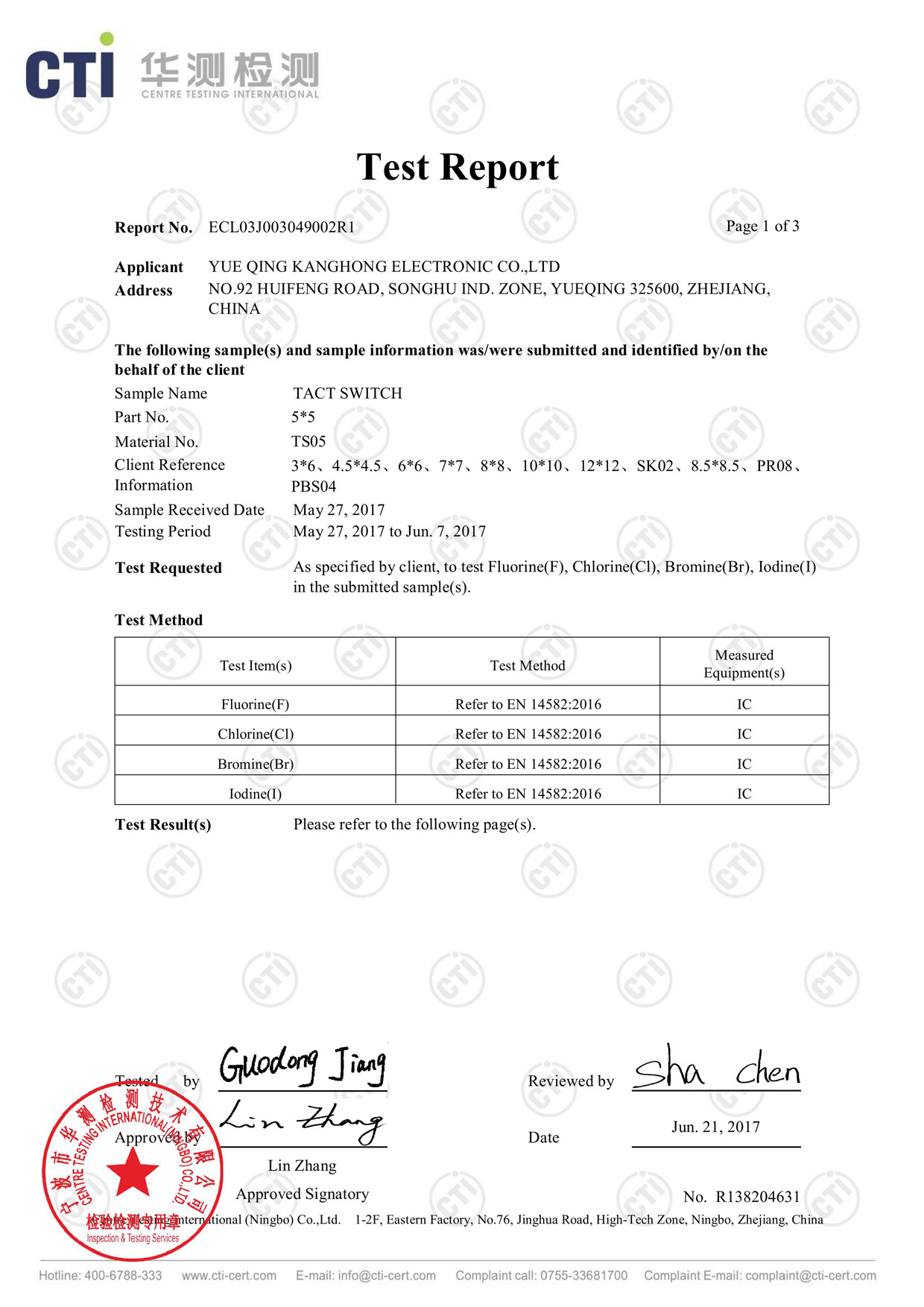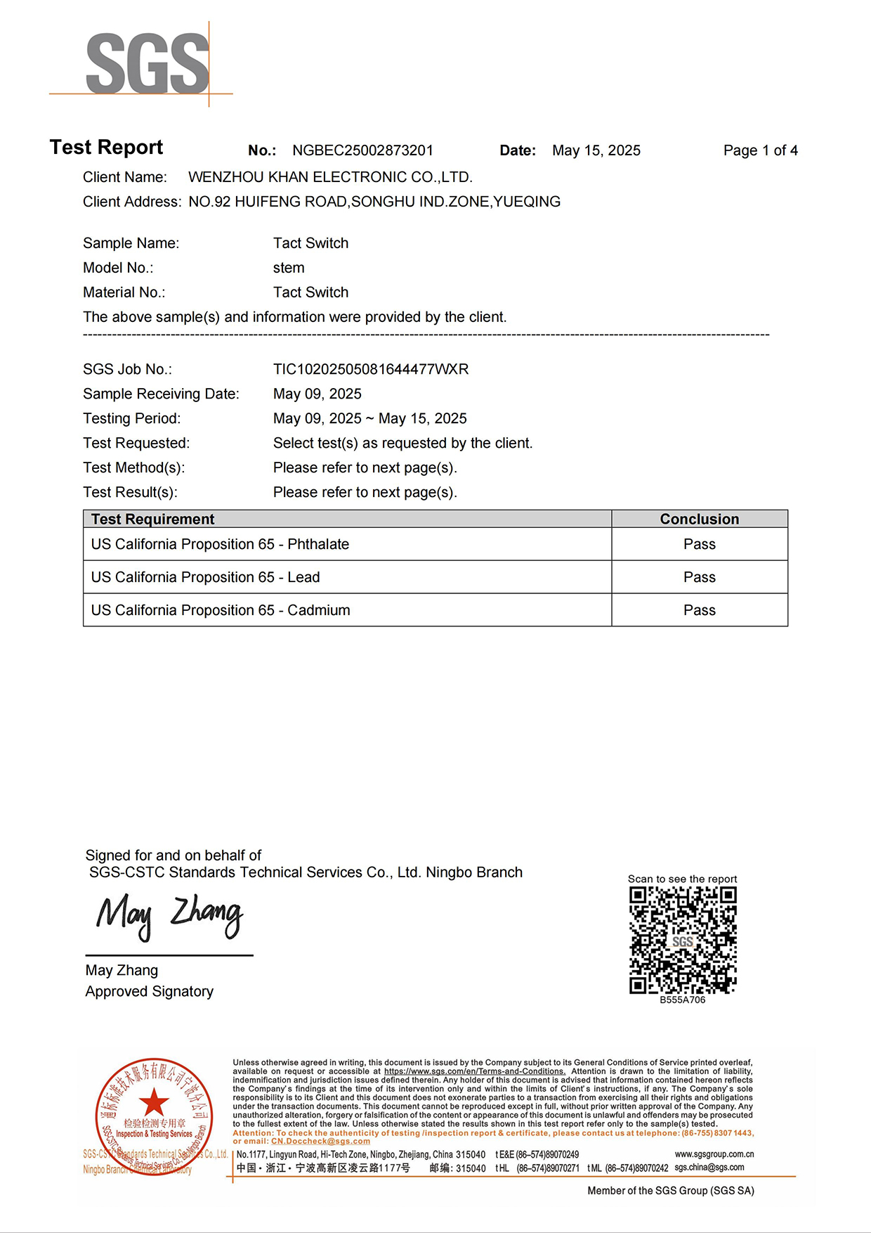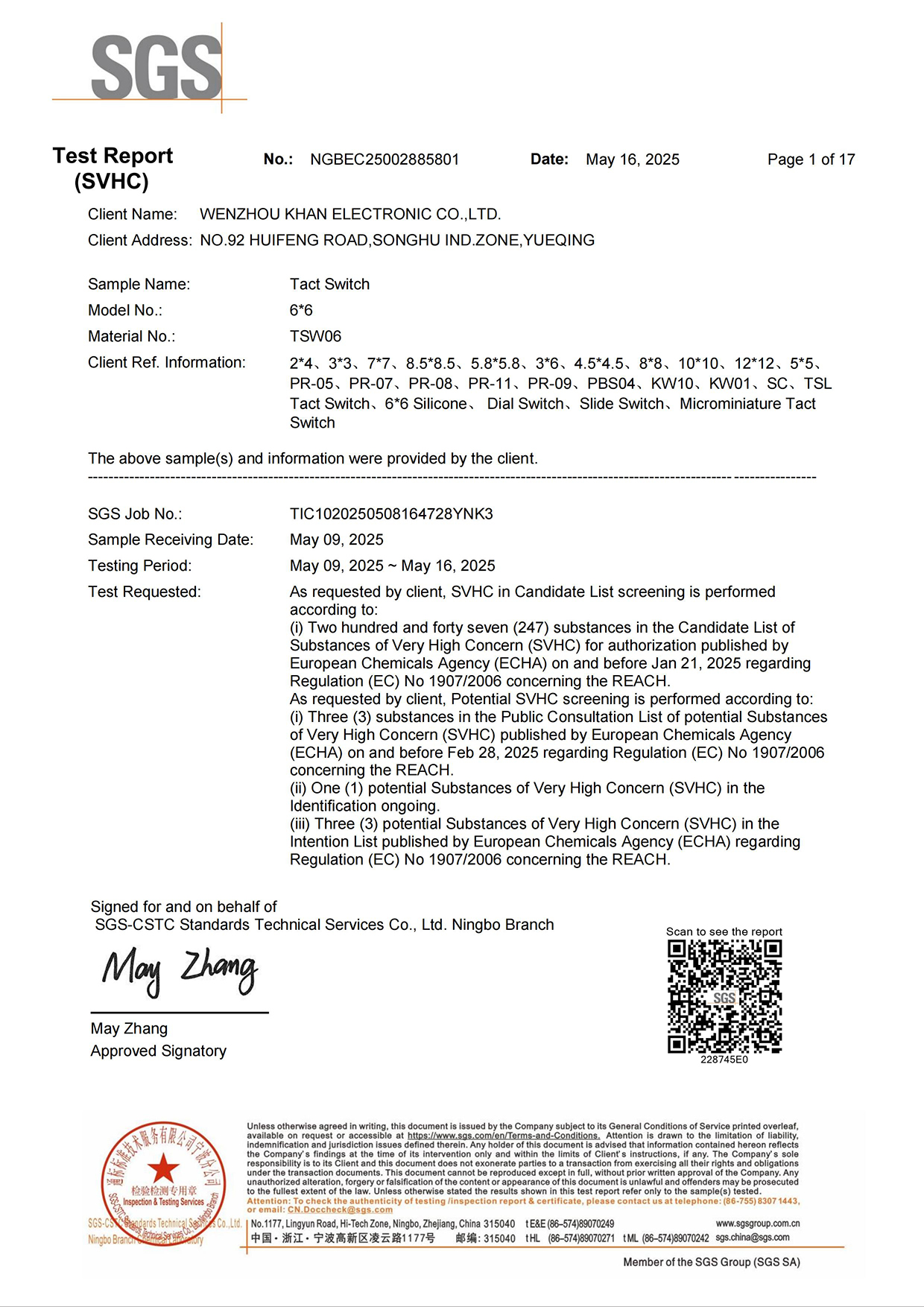 Address:NO.92 HUIFENG ROAD, SONGHU IND. ZONE, YUEQING 325600, ZHEJIANG, CHINA
