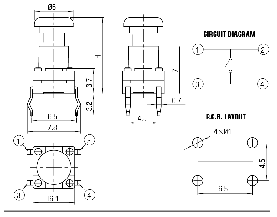 DIELECTRIC STRENGTH | AC250V for 1 Minute | |