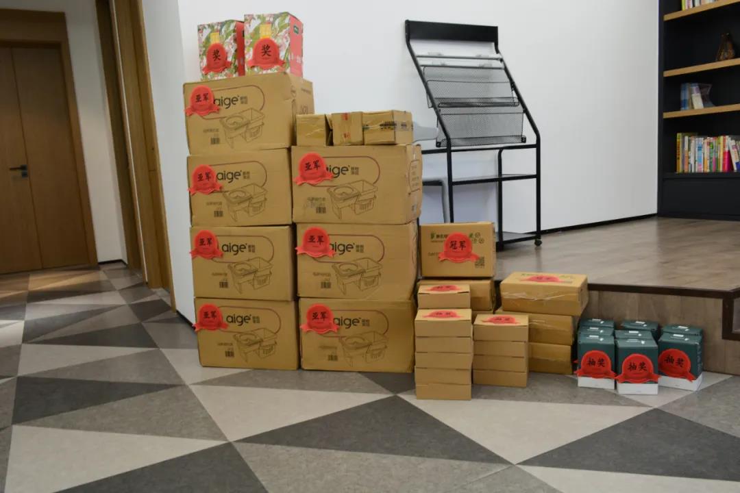 這次積分的獎品多種多樣:天貓精靈、旋轉式拖把套裝、智能保溫杯、保溫盒、蚊香液套裝、精裝玻璃杯等,獲獎伙伴的臉上充滿了笑容。
