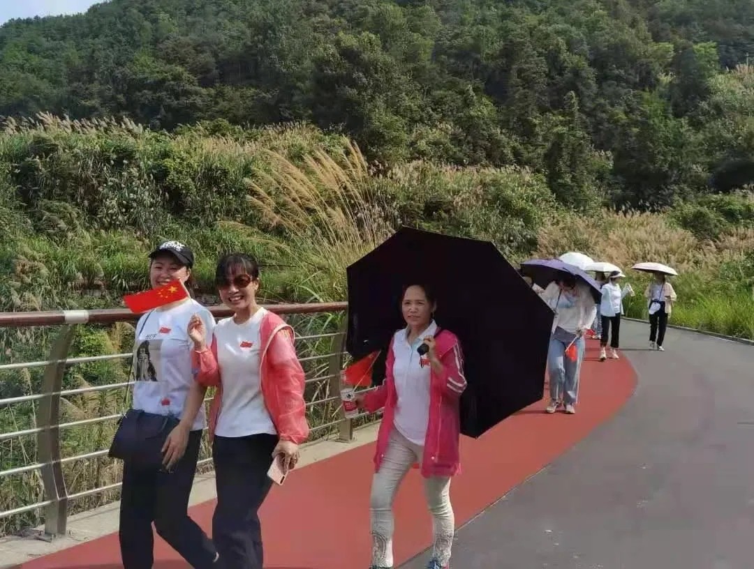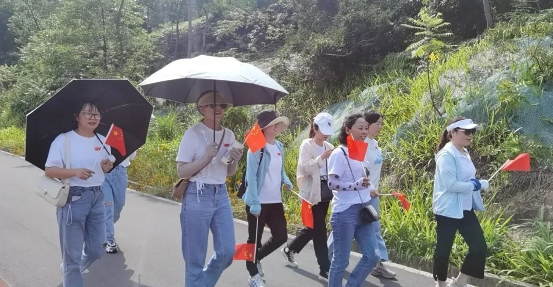 徐總話音剛落,全體人員邁著堅定的步伐,跟隨著旗幟有序出發(fā)了。雖然天氣炎熱,但大家的熱情絲毫未減,沿途一路欣賞四周秀麗風(fēng)景,偶爾微風(fēng)徐來,為炎熱的午后送來了一抹清涼。