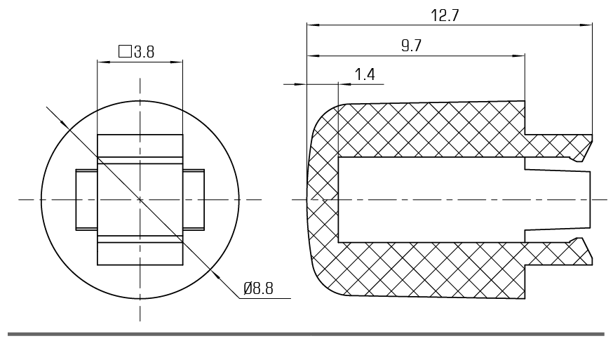 SC2鍵帽系列內孔為3.8×3.8mm配12×12方頭輕觸開關 | |