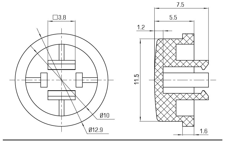 SC2鍵帽系列內孔為3.8×3.8mm配12×12方頭輕觸開關 | |