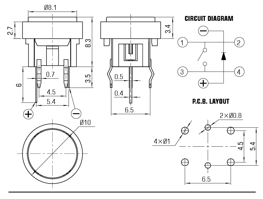 型號 | 顏色 | 峰值波長 (Unit:nm,IF=20mA) | 光強 (Unit:mcd,IF=20mA) | 正向電壓 (Unit:V,IF=20mA) | 光強半值度 2θ 1/2 |